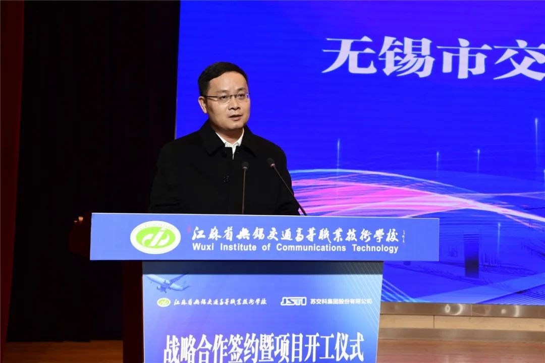 金凌副厅长在讲话中指出,生产性交通工程试验检测中心的共建,是无锡交校和苏交科集团共同落实国家和省相关政策的坚实举措和实际行动。近年来,无锡交校以产教融合协同育人为主线,以四学院三中心为载体,以三教改革为抓手,聚焦现代交通运输体系和社会经济转型发展,着力提升五年制高职人才培养质量,实现了专业结构与交通行业、区域经济、企业需求深度融合,提升了学校服务交通运输现代化建设的能力。苏交科集团拥有工程行业各领域最高等级资质,是国内基础设施领域咨询行业龙头企业、工程咨询行业首家上市公司,2022年,获得省政府颁发的江苏省省长质量奖,是设置奖项以来江苏省交通领域第一家获此殊荣的企业。这些发展成就为校企双方进一步高质量协同发展奠定了坚实的基础。此次共建,是无锡交校和苏交科集团共同落实国家和省相关政策的坚实举措和实际行动。他对共建生产性交通工程试验检测中心提出三点希望:要聚合校企力量,打造校企合作典范。要聚焦人才培养,满足行业技能人才需求。要聚力行业发展,服务交通运输事业。
