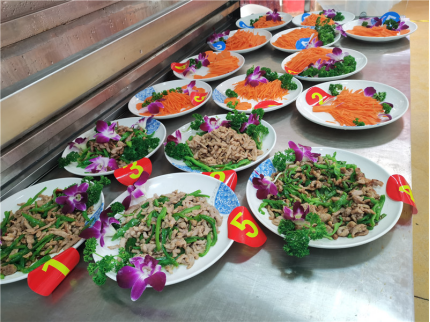 比赛现场,女教师们积极备战,拿出工作中的敬业以及严谨精神,开始了厨艺角逐。洗菜、切菜、放油、下料、摆盘……选手们动作娴熟,一气呵成,厨房顿时香味扑鼻。平日里在课堂上的女教师变身美厨娘,展示自己的独特厨艺。虽然只是几道家常菜,但是经过厨娘们的巧手制作后,都成了一件件美轮美奂、色香味俱全的艺术精品,各类美食扑鼻馨香更是引来众多教职工以及学生的驻足围观品尝。