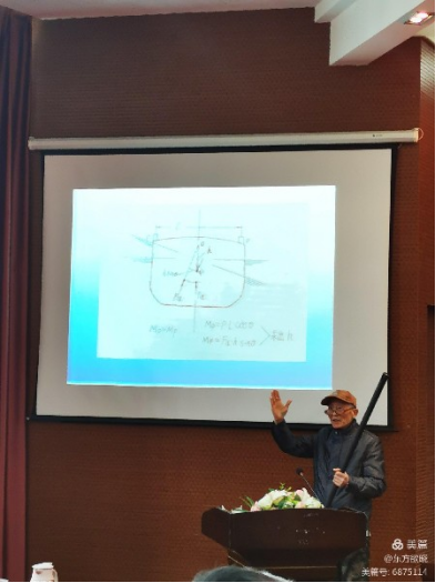 随后,程老师从新船的诞生、确定总布置、型线设计、浮心位置、船舶稳性、船舶阻力美)及快速性、船体建造与下水等七个方面介绍了船舶的设计与建造过程。