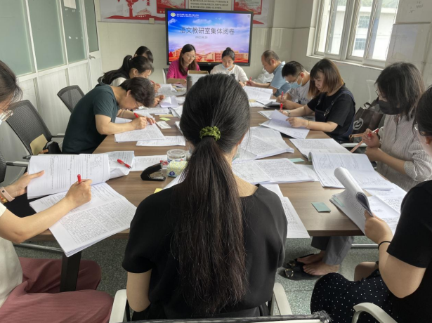 阅卷时,老师们根据分工流水作业,秉着对每一个学生负责的态度,老师们认真阅卷,细致批改,阅卷工作有序进行。阅卷后,任课老师做好试卷复查、核分校正、登分统计等工作。整个阅卷既分工又合作,井然有序、严格规范。另外,老师们也认真做好阅卷总结和试卷分析,通过试卷中反映的问题,找出学生知识掌握中的薄弱点和教学环节中的不足,在今后的教学中加强针对性,更好的提高语文教育教学质量。