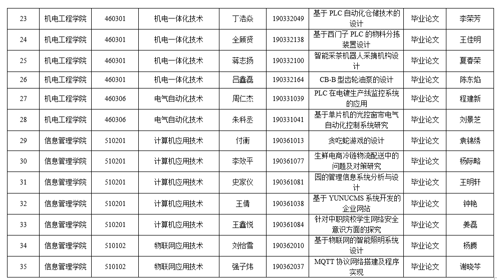 根据《关于做好2024届毕业生毕业论文(设计)答辩及优秀毕业论文(设计)认定的通知》,经各学院遴选推荐、组织专家评审,拟认定35篇作品为2024年学校五年制高职优秀毕业论文(设计),拟获奖名单详见附件1,现予以公示。公示期限:2024年7月5日—2024年7月11日。如有异议,请与教务处卢波老师联系,联系电话:0510-68781133。