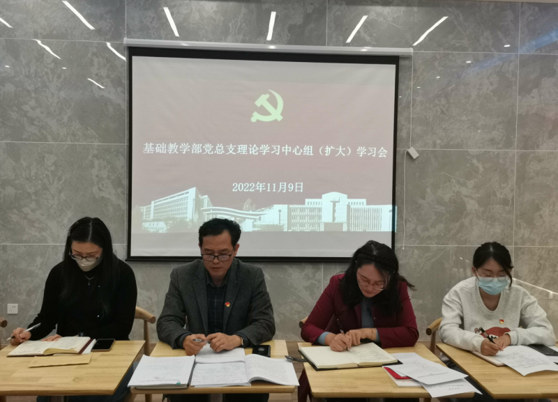 为深入学习宣传贯彻党的二十大精神,强化思想理论武装,按照学校党委统一部署,11月9日下午,基础教学部党总支召开了 “深入学习宣传贯彻党的二十大精神 奋力谱写学校高质量发展新篇章” 为主题的理论学习中心组(扩大)学习会。基础教学部党总支全体党员参加会议。学校副校长耿兴华出席会议并讲话。会议由基础教学部党总支副书记杨凤琴主持。