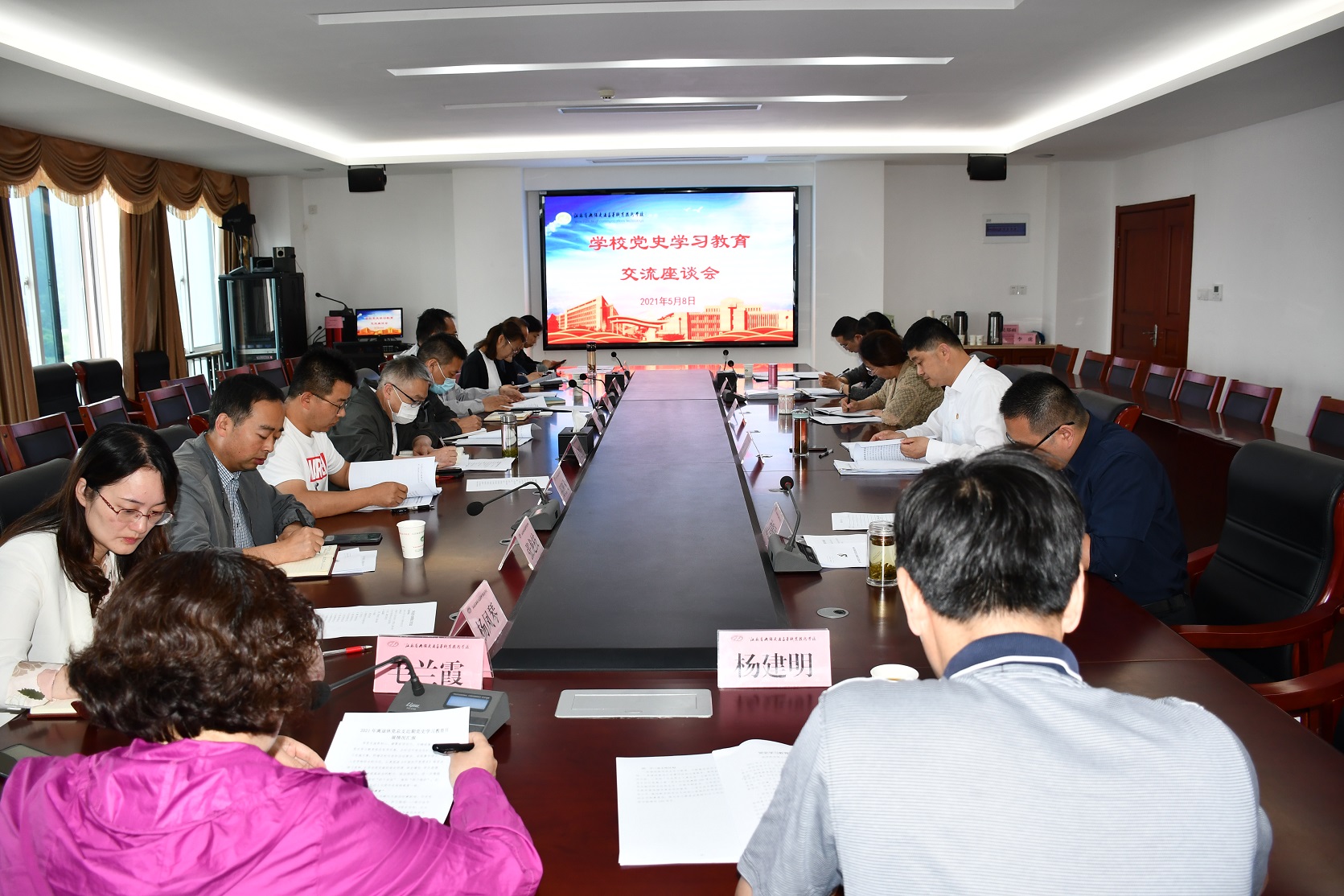 5月8日,学校召开党史学习教育交流座谈会,党委副书记、纪委书记朱雨兰、党史学习教育领导小组办公室各组组长以及全体党总支(直属党支部)负责人等20余人出席本次会议,会议由党委委员、副校长邢勇主持。