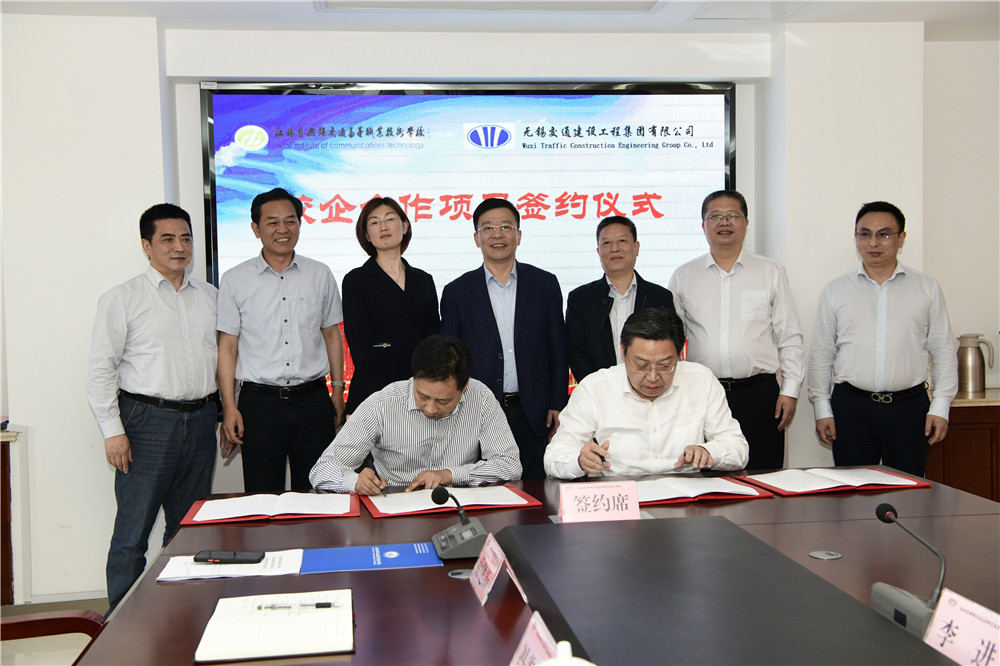 学校党委书记、校长李虎与无锡交建集团有限公司总经理蒋豪代表校企双方签订了“江苏交通工程试验检测技术研究中心”合作协议书和“无锡交建订单班校企合作人才培养”协议书。
