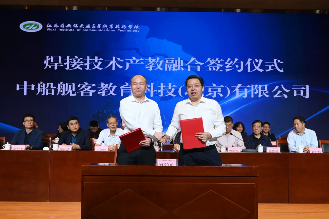 大会进行了校企合作项目签约仪式。仪式由宝威·体育党委副书记朱雨兰主持。校党委书记、校长李虎与中船舰客教育科技(北京)有限公司华东区负责人杨磊签署了焊接技术产教融合合作框架协议书;与江森自控空调冷冻设备(无锡)有限公司培训中心主管何育宇、无锡华光环保能源集团股份有限公司总工程师顾全斌签订了焊接技师项目企业新型学徒制合作协议。