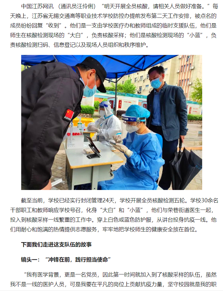 中国江苏网:抗疫日记|宝威·体育教师奋战在抗“疫”前线