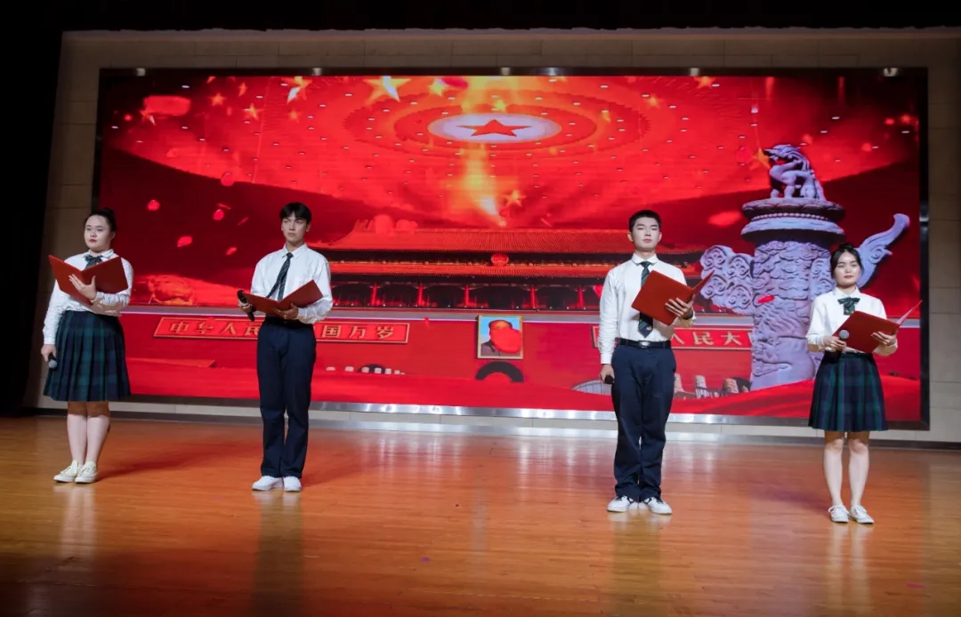 舞蹈《送别》、啦啦操《一起向未来》,绽放了青春的活力,表达了学弟学妹的依依惜别之情;教师们为同学们献唱歌曲《放心去飞》,温暖全场;诗朗诵《请党放心 强国有我》表达了青年学子“奋斗正青春,青春献给党”的铮铮誓言。
