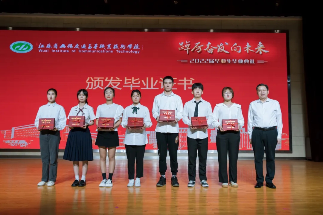 耿兴华副校长宣读了《关于准予2022届毕业生毕业的决定》,2022届1647名毕业生顺利毕业。李虎校长为毕业生代表颁发了毕业证书,朱雨兰副书记宣读了《江苏联合职业技术学院优秀毕业生表彰决定》并颁发荣誉证书,邢勇书记宣读了《关于表彰2022届优秀毕业生的决定》 并颁发荣誉证书。