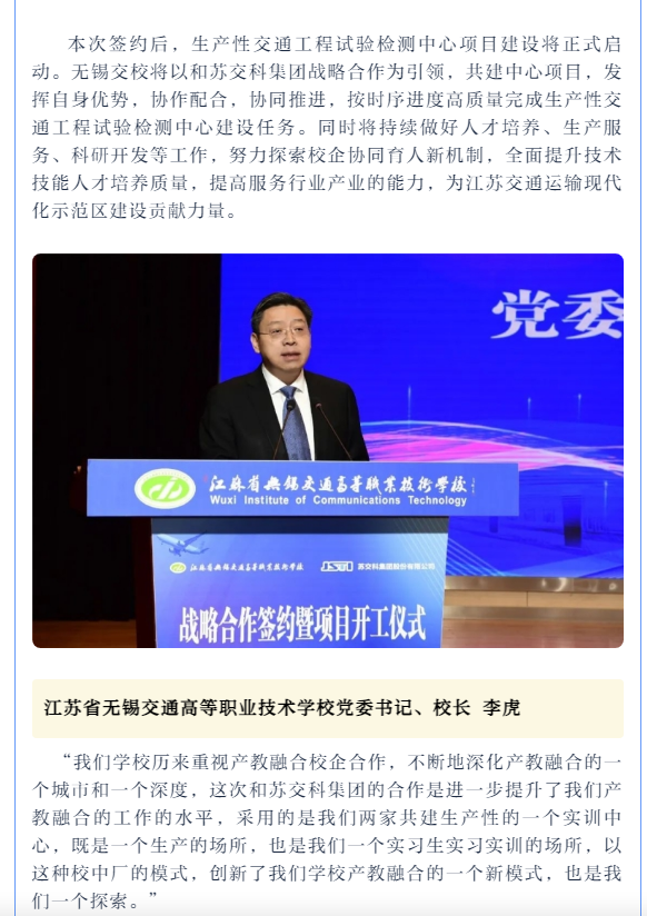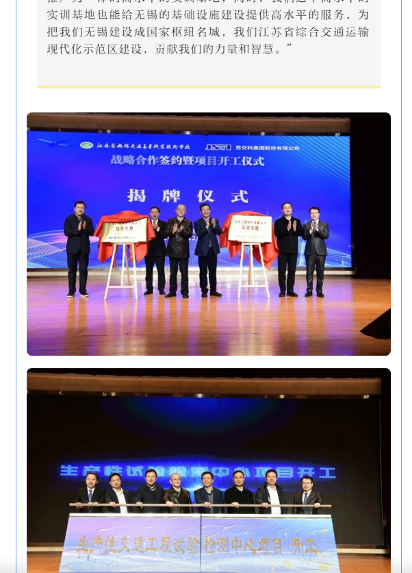 无锡博报:无锡交校与苏交科集团共建生产性交通工程试验检测中心项目正式启动(视频版)