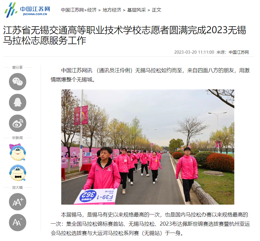 中国江苏网:宝威·体育志愿者圆满完成2023无锡马拉松志愿服务工作