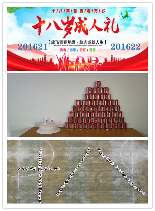 在全场《祝你生日快乐》的歌曲声中,两位班长点燃了18岁生日蜡烛。同学们一起观看了入校三年来的校园生活记录短片以及班级和个人的荣誉榜,回顾了学校成长的经历。成江老师为“十八岁成人礼”致辞,家长代表也为同学们送来了美好的祝福和给予,并献上了鲜花,表达了对孩子们无私的爱和对未来的期盼。在学院领导、老师和家长代表的见证下,同学们在班长刘进同学带领下高举右手,以青春的名义许下报国誓言。蒋红梅副院长为同学们切生日蛋糕以示庆祝,同时给同学们提出了三点美好期许:一是要始终向上而立,做心怀广阔的青年;二是要始终心怀家国,做勇于担当的青年;三是要始终勇于砥砺奋斗,做不甘平凡的青年。活动现场,师生家长们进行了青春洋溢的表演。师生合唱《光阴的故事》、诗朗诵《清平乐·风鬟雨鬓》、滑稽小品《九转大肠》等等,师生的欢声笑语充分展示了201621/22同学们的乐观向上、从容自信。