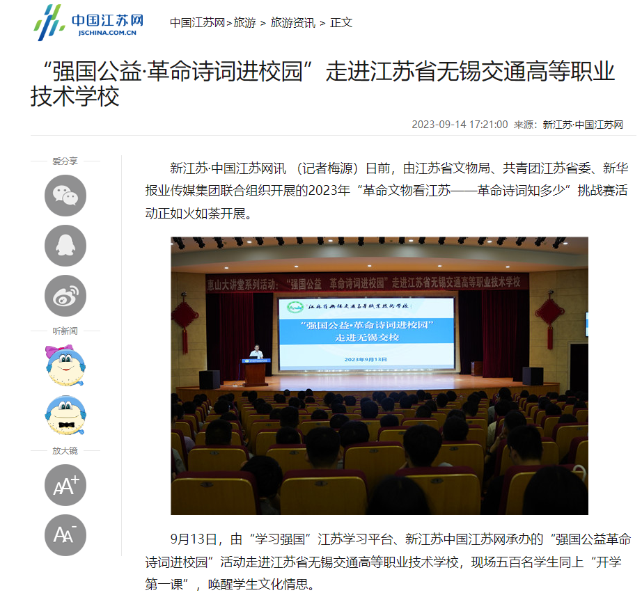 学习强国:传承百年初心 无锡交校学子让红色文化“火”起来