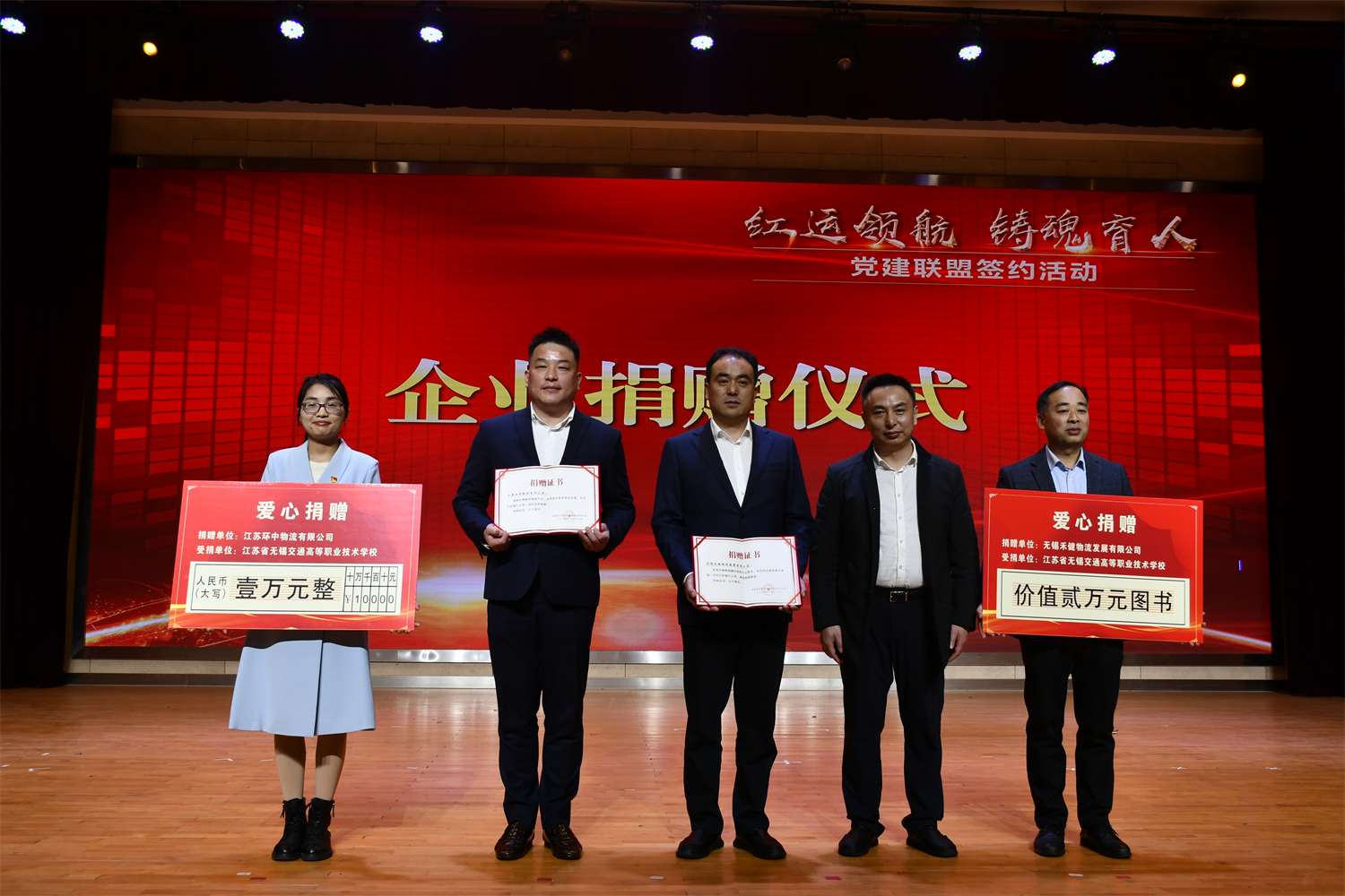 签约仪式上,无锡禾健物流发展有限公司和江苏环中物流有限公司还分别捐赠了教育资金和图书。