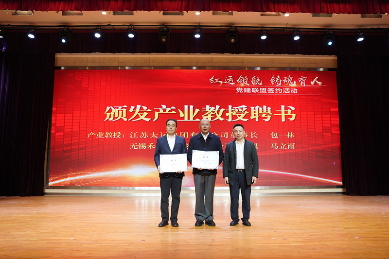 会上,学校校长、党委书记李进分别为两位产业教授颁发聘书。无锡物流与采购联合会党支部与物流管理学院党总支进行签约。学校分别与四家企业代表签署了校企合作协议。政行企校四方嘉宾代表共同为“职业素养培育实践基地、教师企业实践工作站”揭牌。