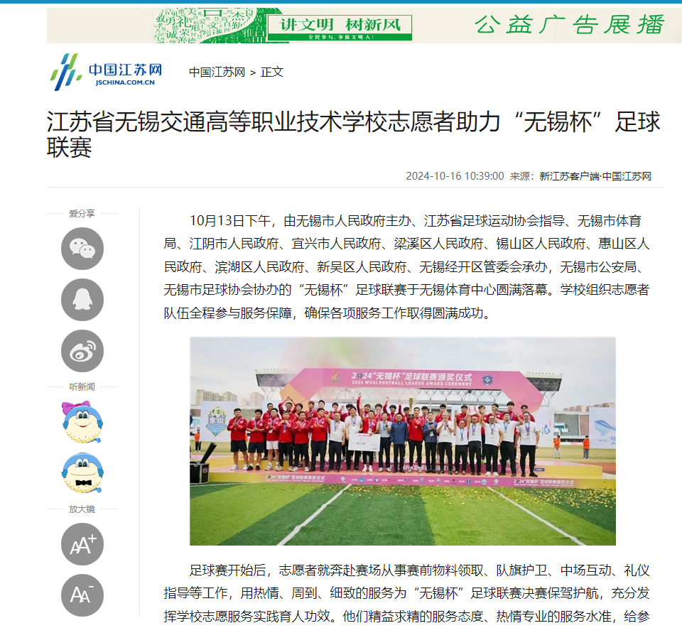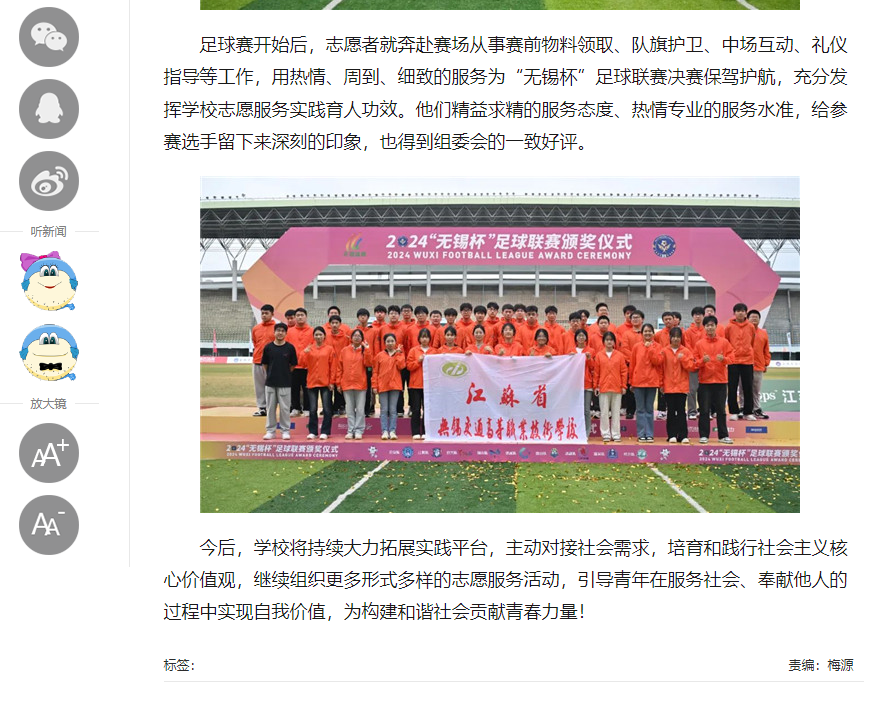 中江网:宝威·体育志愿者助力“无锡杯”足球联赛