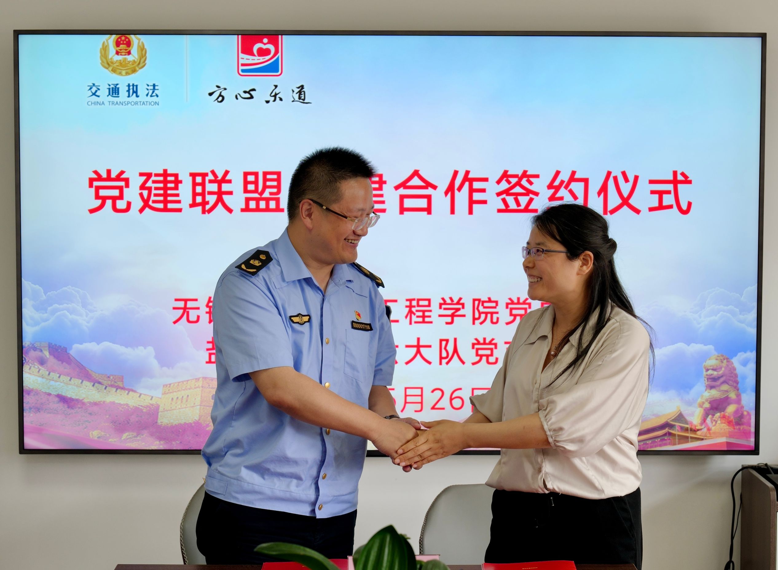 为深化学校与行业合作、推动党建与业务深度融合,5月26日,交通工程学院党总支与盐锡支队第六大队党支部党建联盟共建签约仪式在盐锡支队第六大队会议室隆重举行。双方围绕“互联共建、互助共赢”目标,共绘党建引领高质量发展新蓝图。交通工程学院院长赵巧明、党支部副书记李俊、盐锡支队副支队长吴贤臣、第六大队党支部书记兼大队长高俊及双方党员代表共同出席仪式。