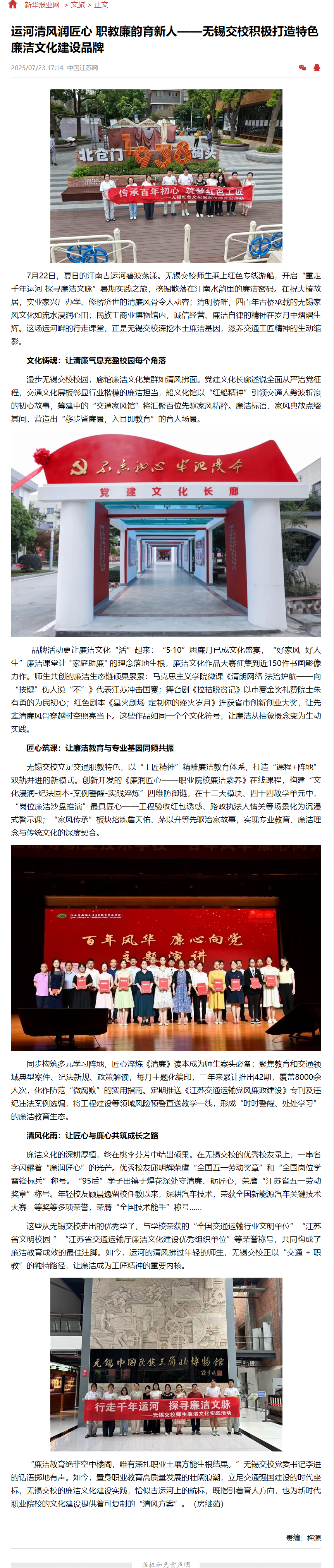 运河清风润匠心 职教廉韵育新人——无锡交校积极打造特色廉洁文化建设品牌 (xhby.net)