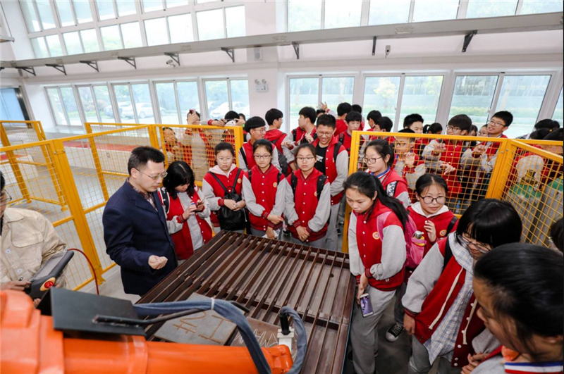 在体验过程中,同学们显示出浓厚兴趣。在专业教师精彩详细的讲解下,对相关专业和职业有了深入的了解。部分学生还亲自操作工业及机器人能够自动喷漆喷釉等,自动行走做各种活动,让同学们连连称赞。