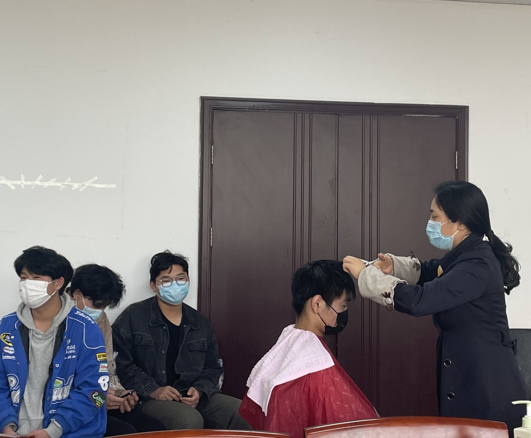 因疫情防控需要,自3月中旬以来,学校实施全封闭管理,住宿学生不能外出,随着时间推移,气温逐渐升高,“理发难”也成了学生们的“头”等大事,为满足学生的日常需要,4月15日,交通工程学院吴雪琴院长一到学校,就把从家里带来的理发工具,化身发型师“托尼老师”,义务帮我院大理学生及其他同学解决“头等大事”,吴院长用心设计发型,耐心修剪头发,清爽干练的发型便出现在眼前,直到下午六点左右,才结束“营业”。
