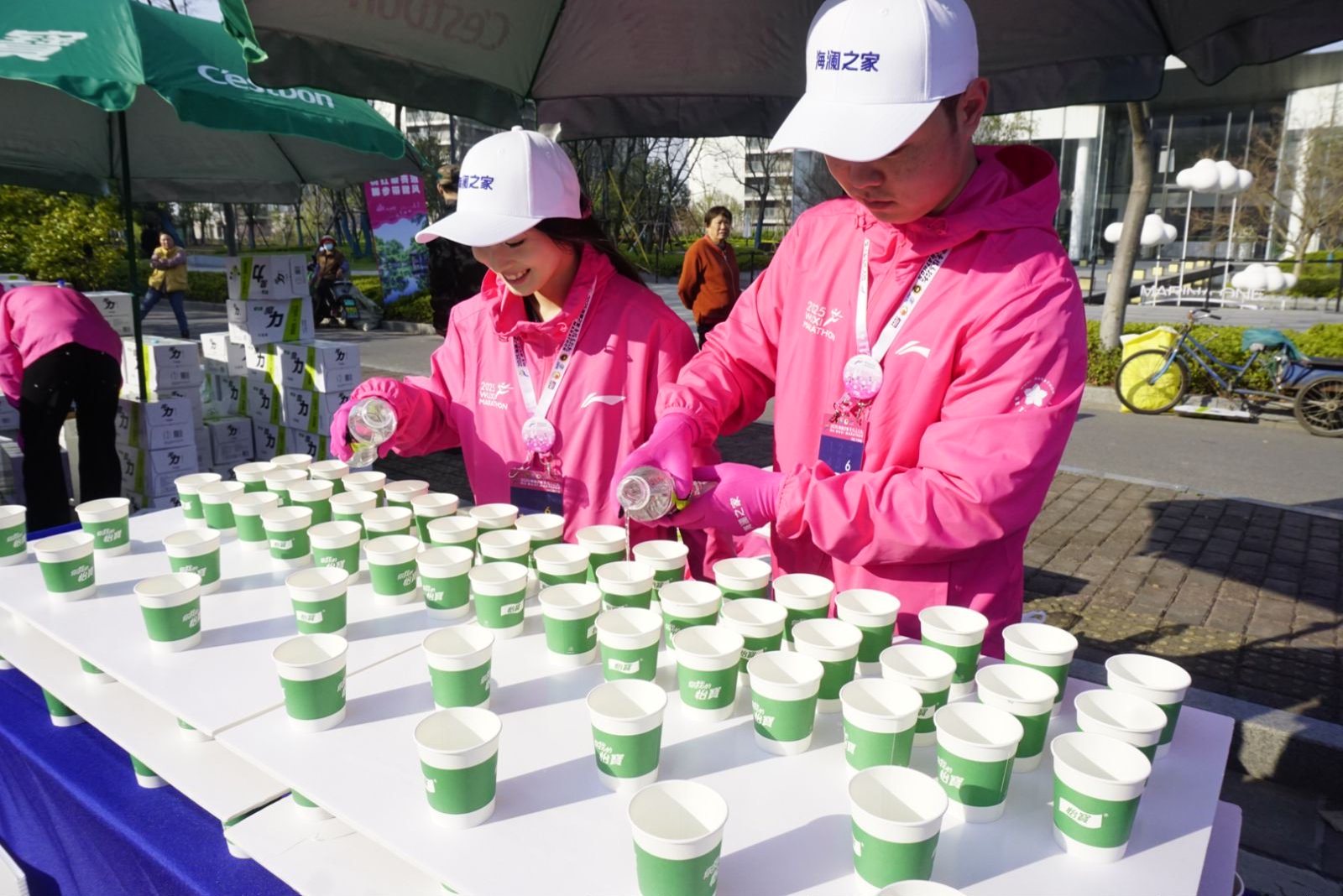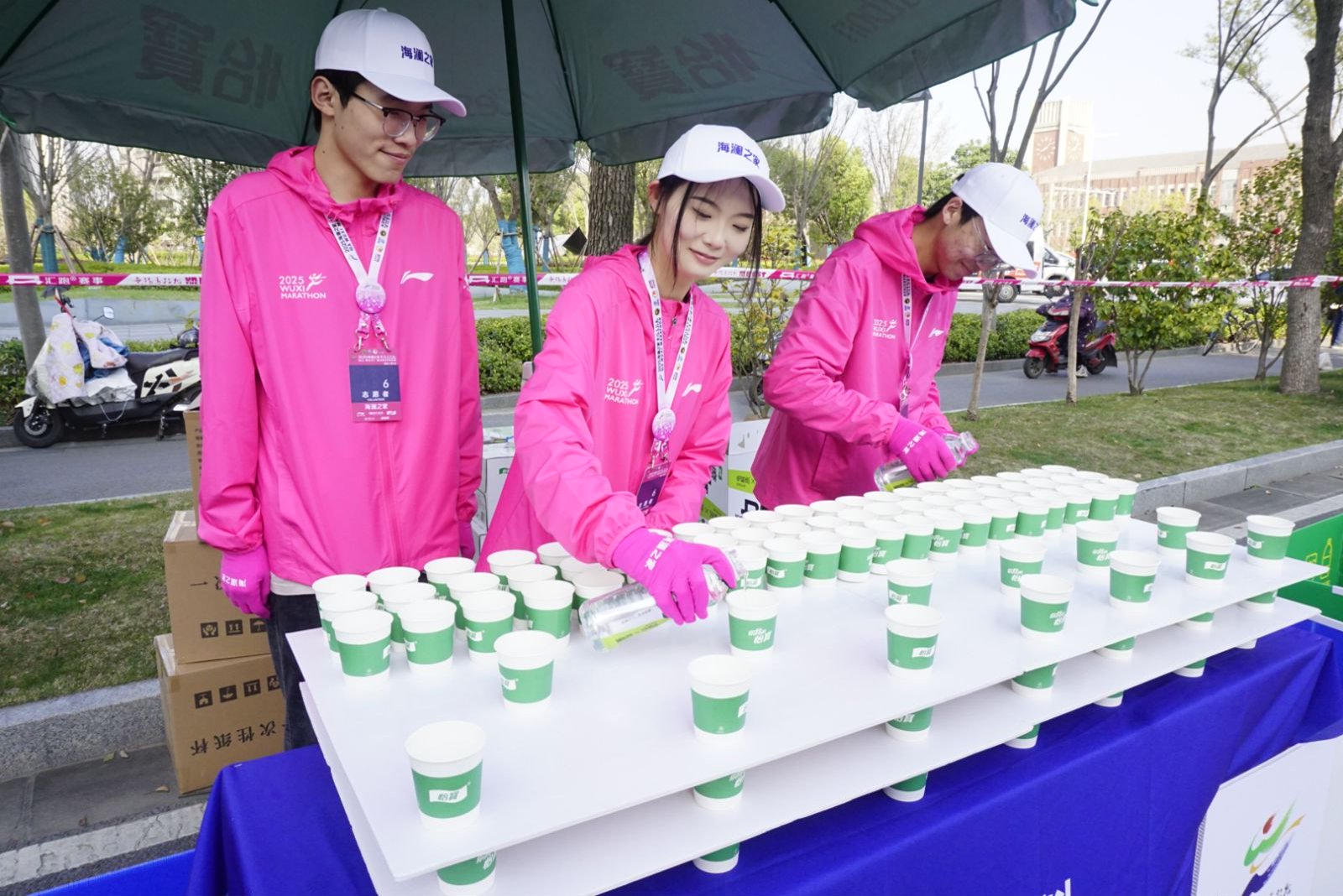 3月23日清晨6点,当城市还未完全“苏醒”,停在无锡交校门口的大巴车外,已聚集了一群身着“樱花粉”的志愿者。420余名马拉松志愿者整装待发,即将前往无锡马拉松保障点位。
