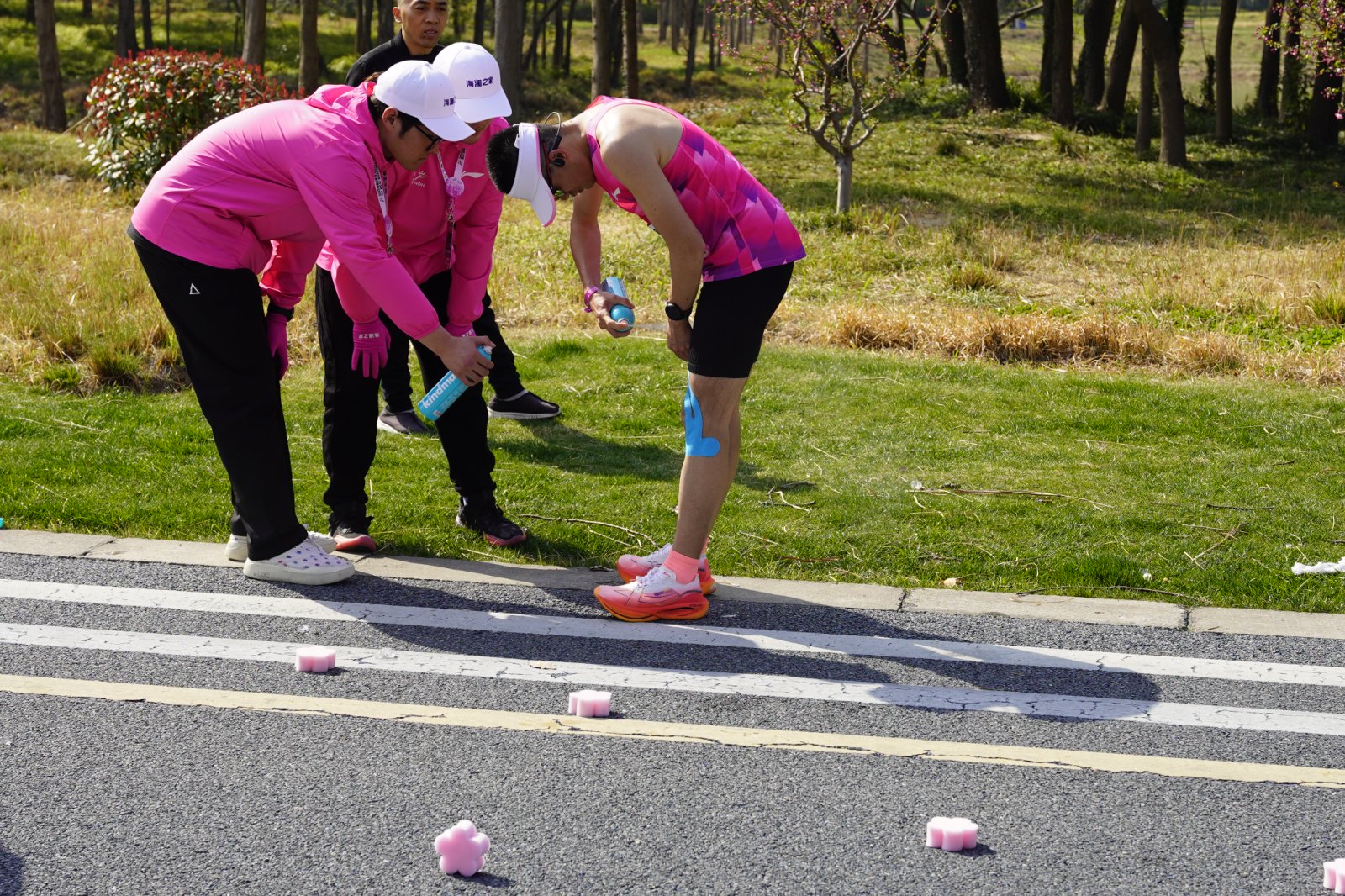 清晨6:30,志愿者们精神抖擞,迎着朝霞到达各自的岗位。在赛道沿途,志愿者们化身“能量补给站”,小绿伞下,他们将饮用水、能量胶、水果等物资摆放整齐,时刻准备为选手们提供能量补充。他们熟练而迅速地将补给品递给选手,同时还热情地喊出:“加油!”比赛当天气温较高,部分选手陆续出现中暑、扭伤、抽筋等身体不适,医疗志愿者们熟练地配合随车医生,及时对选手进行有效处置,确保安全完赛。 志愿者们热情洋溢的身影在赛场上随处可见,他们各司其职,牢记志愿者的使命和担当,除了细致地准备物资、清理赛道,保障赛事的顺利进行,志愿者们在工作之余积极为参赛选手加油助威,用汗水和微笑为这场盛大的赛事注入了温暖与活力。 在这场马拉松活动中,学校志愿者以专业的服务、热情的态度和无私的精神,为赛事的顺利进行做出了重要贡献,诠释了奉献、友爱、互助、进步的志愿者精神,展现了当代青年学生的青春风采和积极向上的精神风貌。