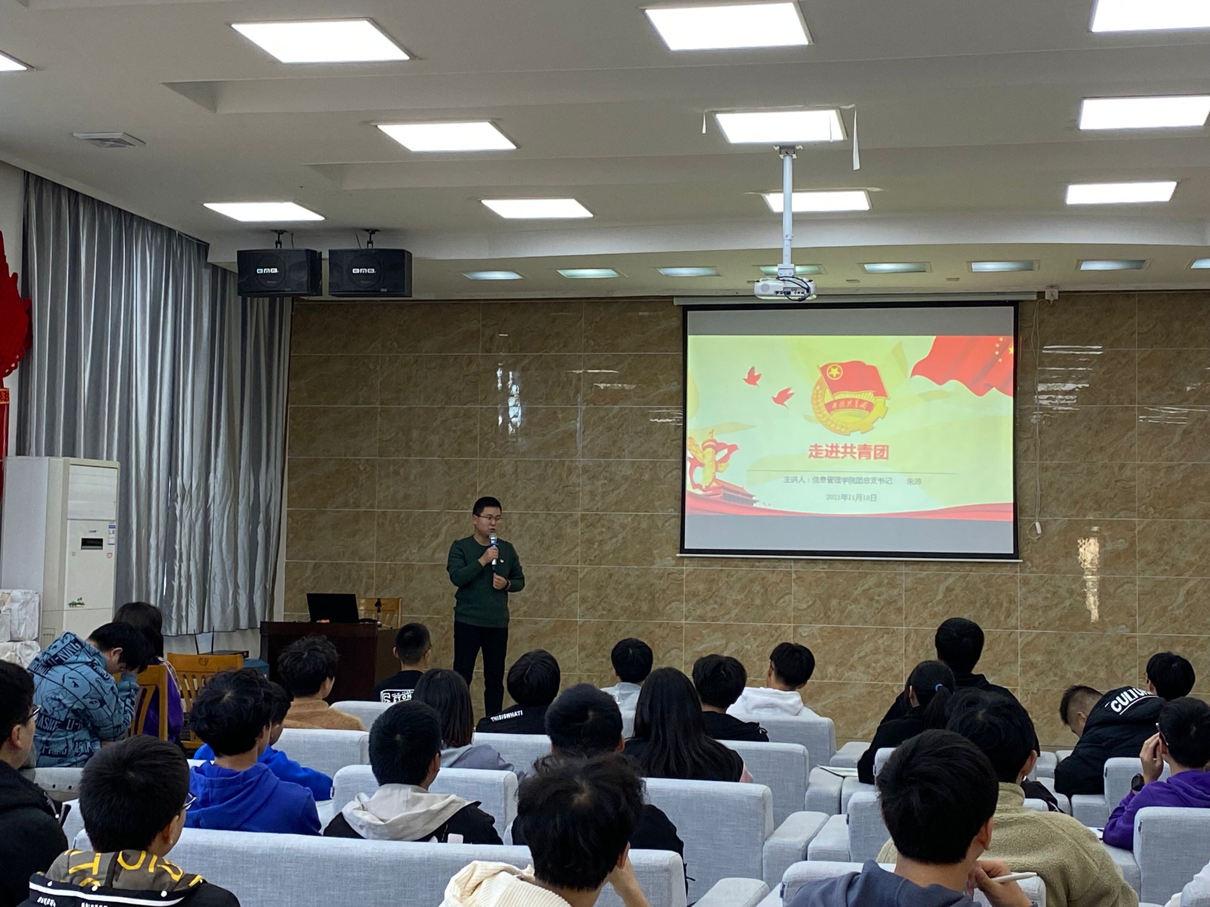 为提高入团积极分子的思想觉悟,培养有理想有抱负的青年学生,根据校团委安排,11月18日15点10分,校团委委员、信息管理学院团总支书记朱沛老师在锡澄校区为同学们开展了以《走进共青团》为主题的讲座。