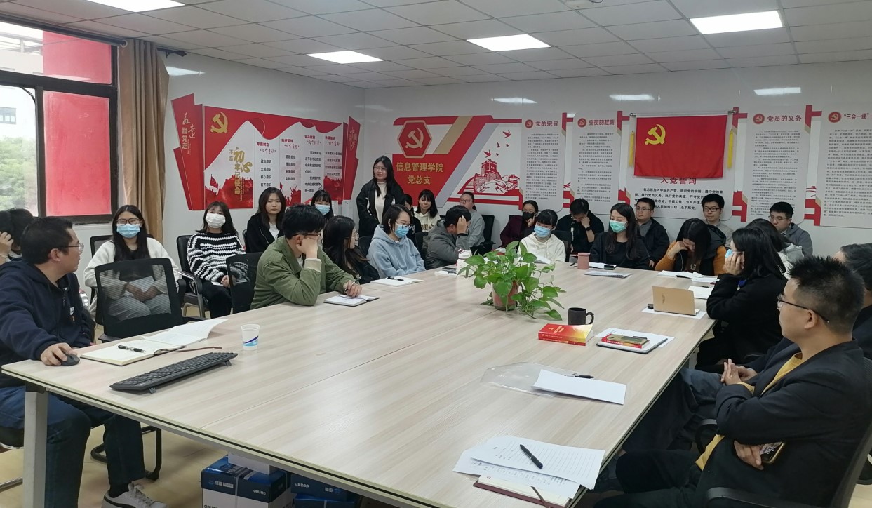 信息管理学院郑智飞院长总结时表示,学习宣传贯彻落实党的二十大精神是当前和今后一个时期的首要政治任务,全院师生要按照习近平总书记对学习党的二十大精神的指示要求,自觉做到在全面学习上下功夫、在全面把握上下功夫、在全面落实上下功夫。学院党员干部把落实好校党委“干部大走访、党员进班级”主题实践活动与学习贯彻落实党的二十大精神紧密结合起来,引导广大师生自觉学习宣传贯彻党的二十大精神,并在实践中内化于心、外化于行,确保把党的二十大精神落到实处,把党的二十大精神学习成效转化为推动学院高质量发展的生动实践。