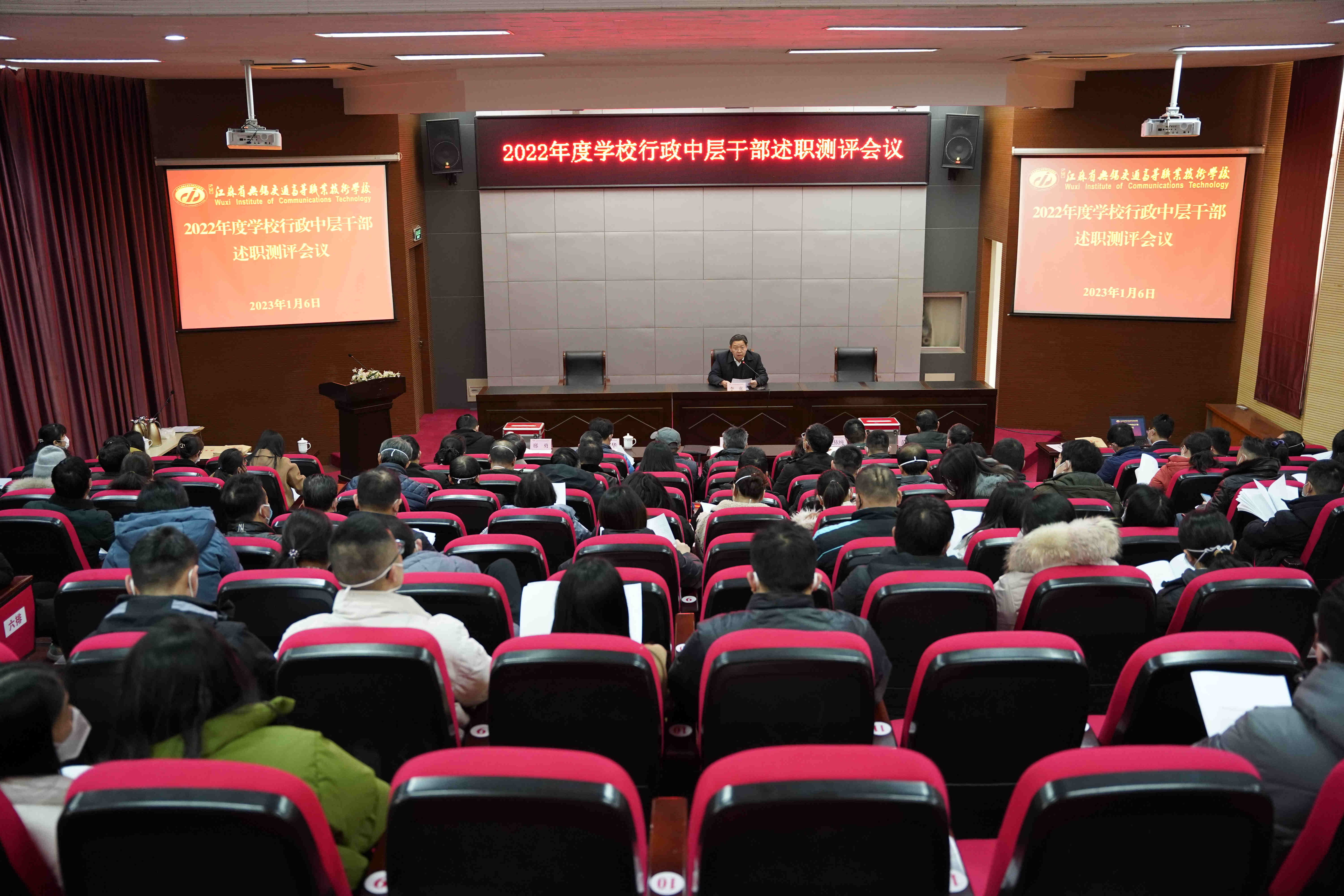 16日下午,学校在学术报告厅召开2022年度行政中层干部述职测评会议。学校全体校领导、全体中层干部、院部教师代表、行政处室管理人员代表130余人参加了此次会议,会议由校党委书记、校长李虎主持。